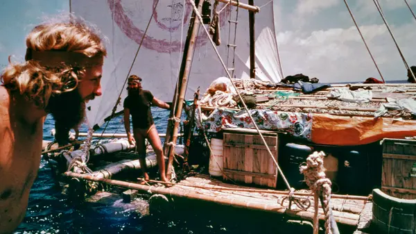In 1973, 12 men gathered in Ecuador at the start of a seemingly impossible mission. At the helm was Captain Vital Aslar, a prophet-like leader with a Salvador Dali-inspired dream to cross the South Pacific – roughly 14,500 kilometres, non-stop. The largely inexperienced crew began by building their own vessels from trees they’d felled. Then they headed out into the blue: navigating by the sun and stars, they encounter myriad creatures, tempests and doldrums as they make their way from Ecuador towards Australia. Award-winning documentarian Chadden Hunter blends original 16mm footage with stories from the surviving rafters, vividly conjuring a dreamlike adventure in which each voyager is pushed to their limits.